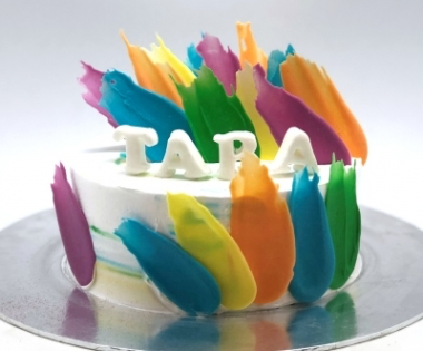 This bird inspired cake features brushstrokes that look like feathers. They add a colourful vibe to the cake while tasting just as good. They also contrast well with the creamy base, adding flavour and aesthetics.