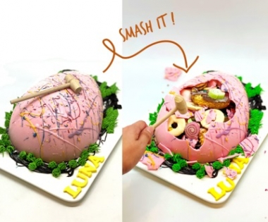 Did you ever want a giant pinata cake that was shaped like an egg? Well now’s your chance to try one! This pinata cake is filled with brownies, candy, sprinkles and more. All you have to do is smash the cake open to unleash the surprises.