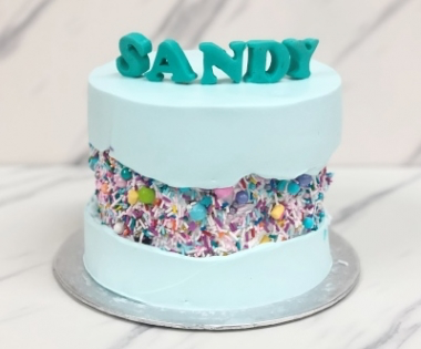 Fault line cakes are cakes that have a crevice in the middle. They’ve gained popularity over the years due to their unique design. Our version is filled with sprinkles that go around the fault line, creating an explosion of colours.