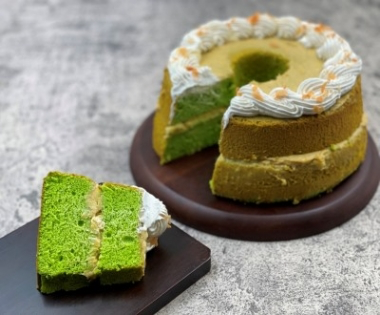 This durian cake combines our Pandan Chiffon Cake (which is best rated on CNN ) with a generous amount of Mao Shan Wang durian. The durian can be found sandwiched right in the middle, perfectly balanced with the lightness of the pandan sponge.